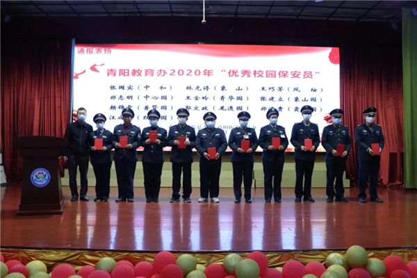 2021年1月18日下午,青阳小教党总支部、青阳教育办召开2020年秋季学期总结会暨2021年迎春座谈会。会上,青阳教育办吴锦华教研员宣读通报表扬各种先进单位和先进个人;青阳片区张国宾等10个保安员被评为青阳教育办2020年“优秀校园保安员”。