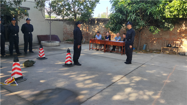 在训练场,保安监管中队吴队长在观摩和检阅集训队考核内容后,肯定了集训队的训练成效,要求培训中心要严格竞赛规程,严抓竞赛培训质效,抓精抓细个人和团体对竞赛规程的理解和剖析,确保大幅度技术水平提升。同时,吴队长强调:要以科学施训为推动,确保竞赛内容的圆满完成;要以安全教学为准绳,确保全员按时参赛,避免“非战斗性减员”;要有大局意识,争先创优的竞赛决心和信心,争取在本届保安职业技能竞赛做出更大更突出的成绩。吴队长还为集训队加油打气,预祝取得优异成绩。