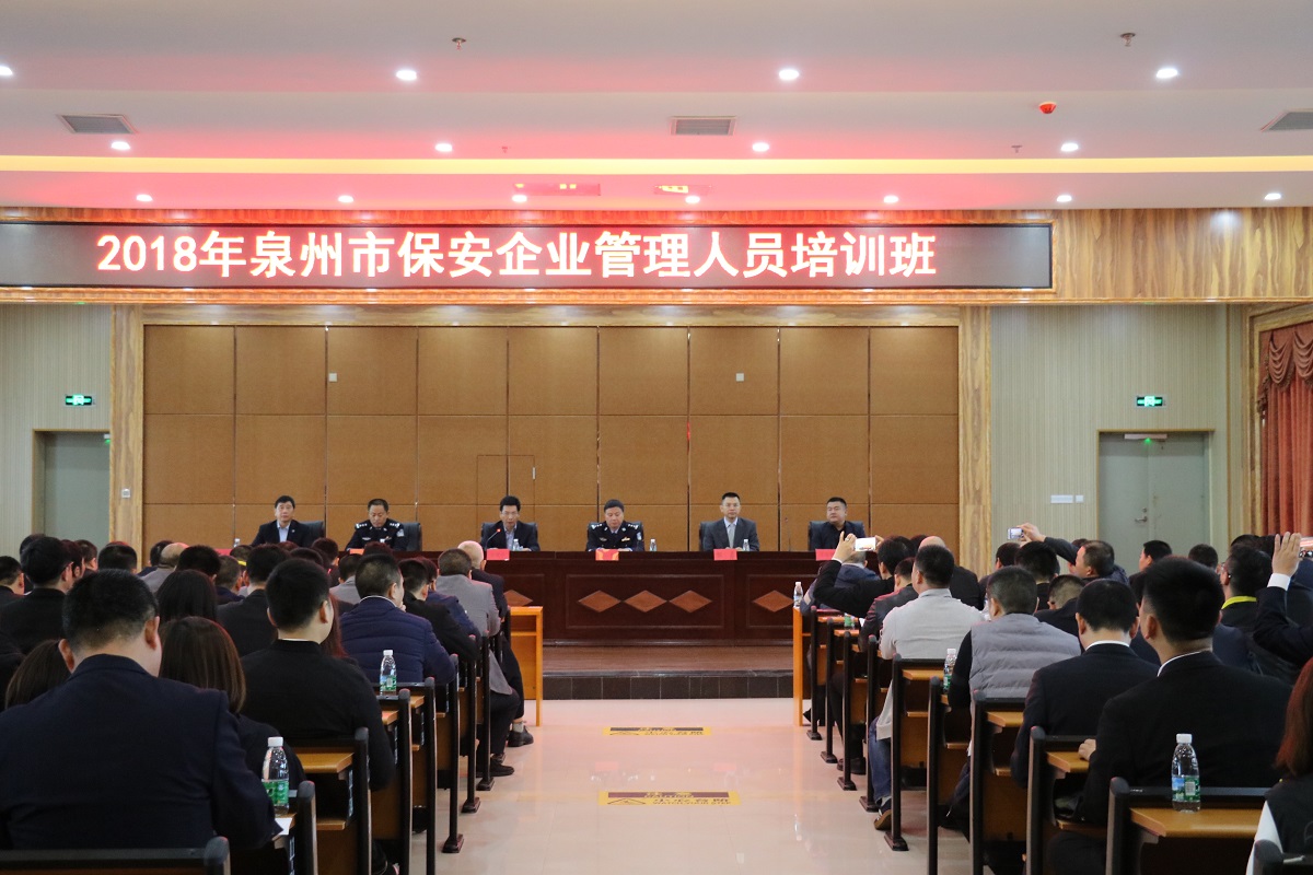 3月20日上午,2018年泉州市保安企业法人代表及主要负责人管理培训班在福建省集英保安集团7楼会议室开班。全市保安企业法人代表及主要负责人约150参会,泉州市保安协会万建平常务副会长主持开班动员大会,泉州市公安局治安支队陈山东政委出席了开班仪式动员大会并发表讲话。