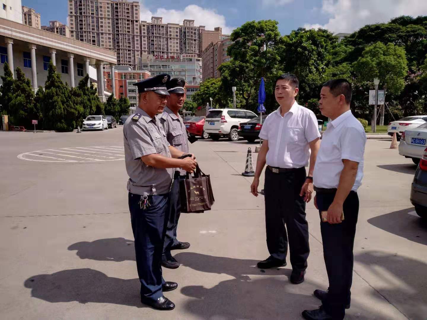 期间,洪书记一行分别走访了石狮市政府、宝盖山风景区、市医院等客户服务单位,深入一线工作现场,亲切慰问坚守在岗位上的一线安保人员,并把消暑解暑物品送到广大保安员手中。望着一个个被晒得皮肤黝黑的保安员,洪书记进行亲切慰问并叮嘱其一定要确保身体健康,劳逸结合,注意防暑降温。奋战在一线的各岗位保安员接到慰问品后纷纷表示:一定会努力克服酷暑高温,坚守岗位,恪尽职守,确保安全。