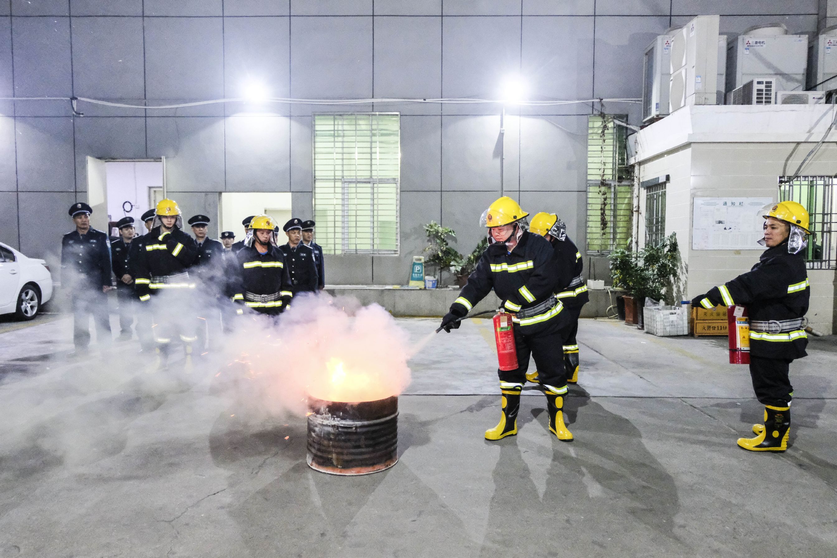 演练要求全体人员要增强互救、自救意识,明确防火责任和义务,充分掌握火灾的处理流程,确保演练取得实效。演练期间,保安中队长就灭火器操作、水带连接、徒手救人、安全防护及紧急避险等个人基本技能向全体参训人员进行模拟示范,详细讲解初期火灾扑灭等消防安全知识。当晚19:30,随着火警警报响起,演练正式拉开序幕,演练人员立即启动火灾应急预案,穿好消防服装,纷纷拿起手中的灭火器,按照正确的使用方法,对准火源根部,由近及远进行扫射,成功扑灭了火苗。随着现场“火势”的成功扑灭,演练活动圆满结束。