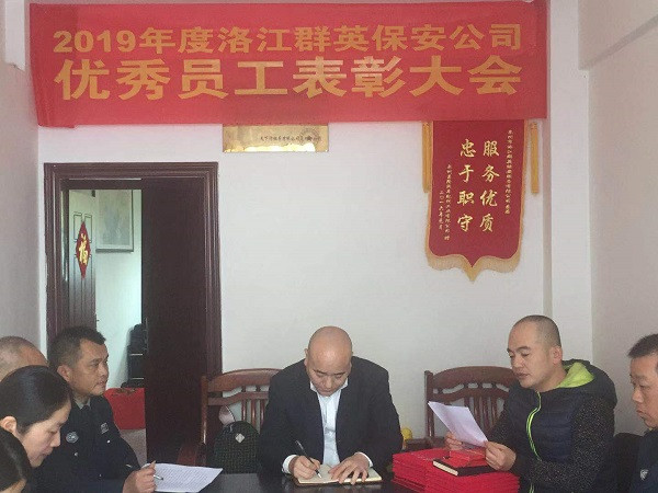 1月20日下午,泉州洛江群英保安公司在公司办公室召开2019年度表彰会暨2020年春节安保工作部署会,公司保安部、综合部、财务部、各保安派驻中队负责人以及获奖保安员代表等参加。会议由公司林副总经理主持召开。