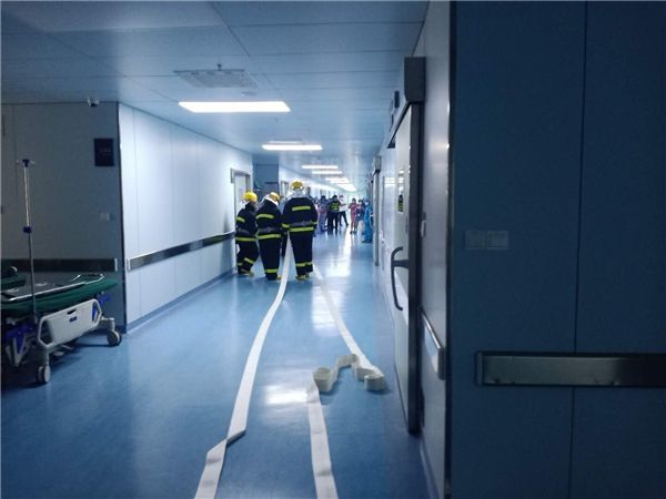 培训期间,由教官为全体参训人员讲解了医院火灾事故及特点,火灾逃生要领和常见灭火器材的使用方法等。本次实战演练模拟在某科室病房区发生火灾,在收到火警报警信号后,保卫管理处立即启动消防灭火救援预案响应机制,迅速调集安保队应急分队及本楼层值班人员,并指挥医护人员和患者从指定路线进行有秩序地疏散到安全地带。同时,应急分队拉好消防水带,手持干粉灭火器进行现场灭火。经过半小时的灭火救援,火源被完全扑灭,火情得到有效控制。