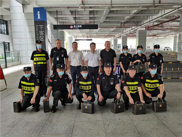 慰问组前往海丝保安驻泉州火车站项目。福建省海丝保安服务有限公司总经理孙惠东等陪同。