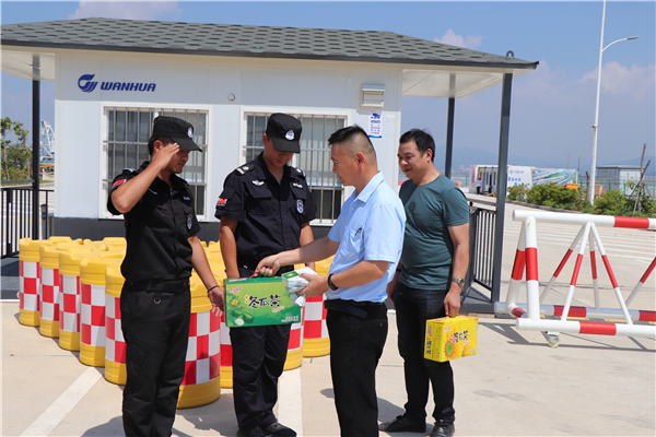 中鑫驻江阴码头项目负责人走访到每一个岗位,并亲自送上防暑慰问品,对执勤在一线员工们的付出表示出由衷的敬佩和尊重,要求现场骨干要合理调整工作岗位,妥善安排员工休息时间,注意劳逸结合,充分利用现有的防暑用品以及各项设施条件,保证员工的安全与健康。