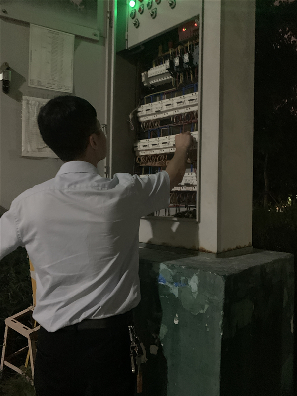 检查公园电力设备,调整夜间照明范围,保留构筑物、主干道应急照明,关闭其他照明灯具,避免造成个别市民在园区内逗留。