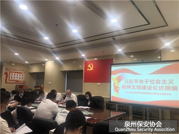 为切实落实中央关于推动习近平总书记系列重要讲话精神学习宣传贯彻向纵深发展的部署要求,11月9日,中共泉州市集英保安服务有限公司联合支部委员会组织全体党员开展《习近平关于社会主义精神文明建设论述摘编》学习,进一步推动精神文明建设走深走实。党支部书记洪俊杰带头领学。