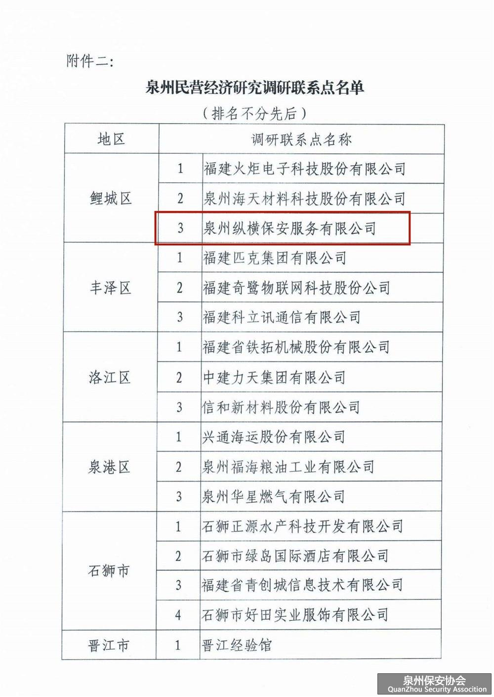 履职尽责——纵横保安集团获评泉州市首批“民营经济研究调研联系点”