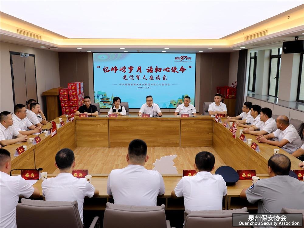 为庆祝中国人民解放军建军97周年,进一步增强退役军人凝聚力和归属感,7月29日,集英集团联合中泉酒业举办“八一”慰问退役军人座谈会。集英集团党委副书记、总经理林育新,中泉集团党委委员、副总经理兼中泉酒业公司总经理尹刚,集英集团工会主席丘幸,集英集团党委委员、副总经理庄能平等参加活动。