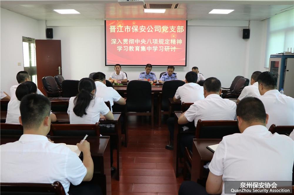 为推动深入贯彻中央八项规定精神学习教育走深走实、见行见效,7月24日下午,晋江市保安公司党支部在办公楼六楼会议室召开深入贯彻中央八项规定精神学习教育暨724全国保安主题宣传。公司领导班子及全体党员参加会议。