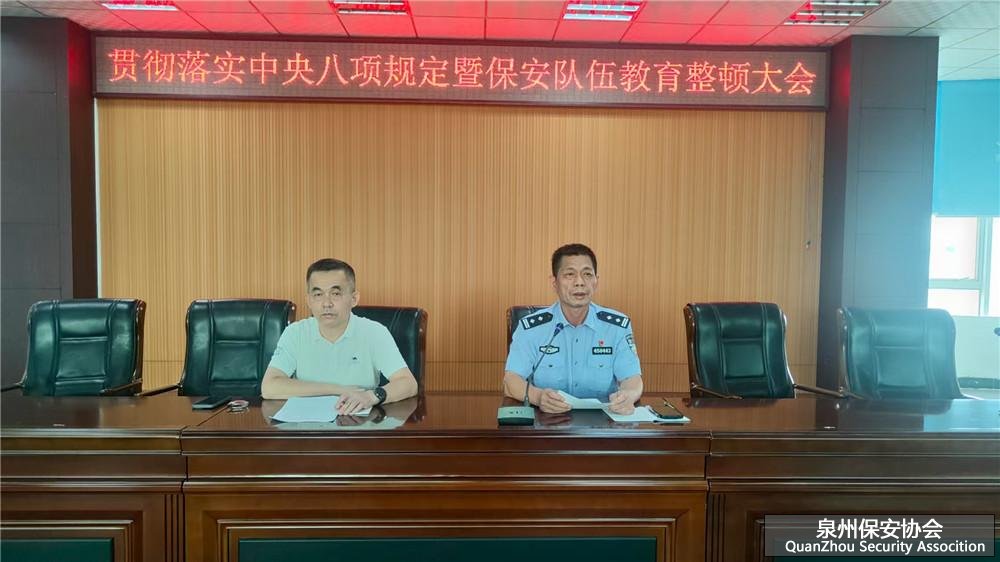 为深入贯彻中央八项规定精神学习教育,强化保安队伍纪律作风建设,2025年7月27日-28日,晋江市创和保安服务有限公司在综合楼五楼会议室分别组织各片区保安员召开“深入贯彻中央八项规定精神学习教育暨保安队伍教育整顿工作动员部署会”。保安公司党支部副书记林天配出席会议并对活动提出要求。各片区保安骨干及片区班组长参会。