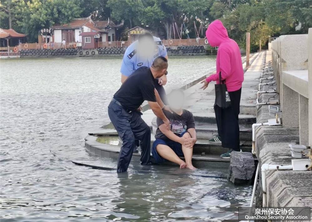 2025年8月22日16时40分,泉州市西湖公园西大门音乐广场旁,一名女子因情绪崩溃,翻越护栏跳入湖中轻生。危急时刻,福建城市联盟保安服务有限公司派驻西湖公园的保安队员彭茂癸挺身而出,以专业素养与无畏勇气完成了一场生死救援,用实际行动诠释了“人民保安为人民”的崇高使命。