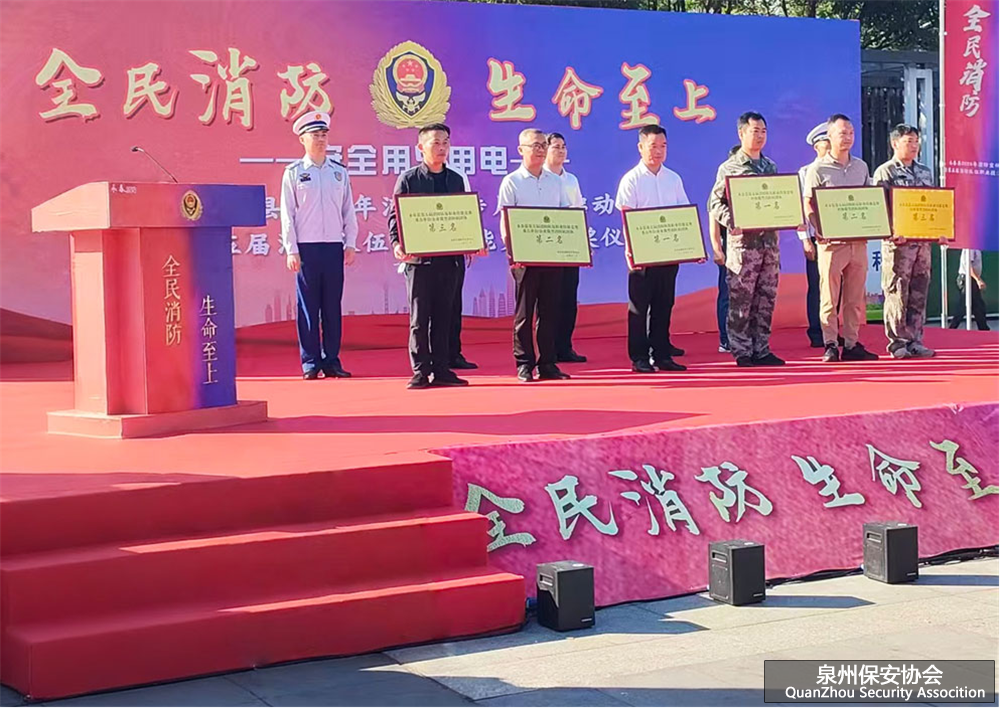 在全国消防宣传月深入开展之际,为切实筑牢消防安全防线,践行 “全民消防、生命至上 ---- 安全用火用电” 主题理念,202年11月7日,永春县第五届消防队伍职业技能竞赛在仓满体育场盛大举行。泉州纵横安保服务有限公司驻永春县医院驻点保安员组成参赛队伍,与全县各支消防力量同台竞技,凭借扎实的技能功底与出色的团队协作,最终荣获竞赛第三名,用实力彰显了纵横安保队伍的专业素养与责任担当。